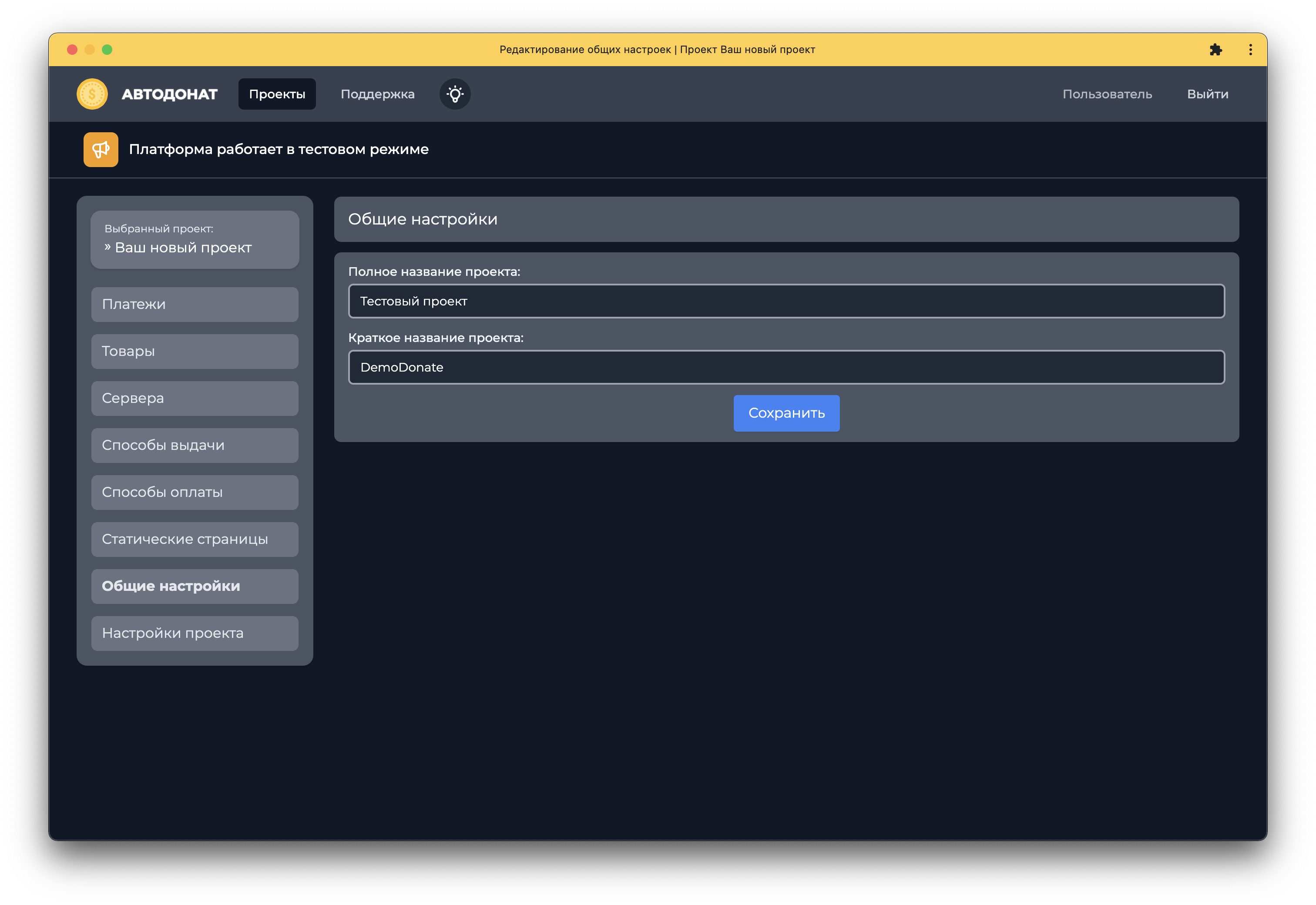 Поля "полное название проекта" и "краткое название проекта" являются обязательными для заполнения.